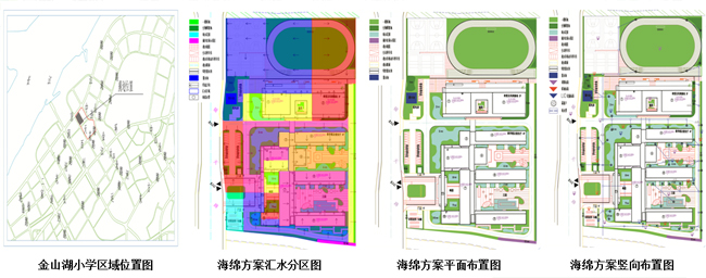 項(xiàng)目設(shè)計(jì)理念是建設(shè)具有自然積存、自然滲透、自然凈化功能的海綿型綠色校園。海綿s設(shè)施方案依據(jù)校園不同的功能分區(qū)(運(yùn)動(dòng)區(qū)、教學(xué)區(qū)、辦公區(qū)等)和基地條件,設(shè)置適合的海綿設(shè)施(雨水花園、生物滯留池、植草溝、綠色屋頂?shù)龋Y(jié)合灰綠結(jié)合排水方式,實(shí)現(xiàn)校園防洪排澇、水質(zhì)凈化、雨水利用等目標(biāo),從而調(diào)節(jié)了校園微氣候。